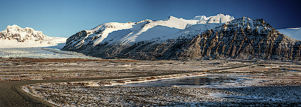 The interior consists of a plateau characterised by sand and lava fields, mountains, and glaciers, and many glacial rivers flow to the sea through the lowlands.